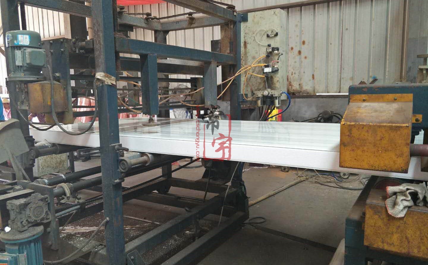 夾芯板也稱復合板,是由彩色鋼板作表層,閉孔自熄型聚苯乙烯泡沫做芯板,通過上海希明全自動化連接成型機將彩色鋼板成型后,用高強度粘合劑粘合而成的一種高效新型復合建筑材料。彩鋼夾芯板,常采用企口插入式,它具有安裝方便、省時、省材,平整度好,強度高等優(yōu)點,特別適用于吊頂、隔斷系統(tǒng)。