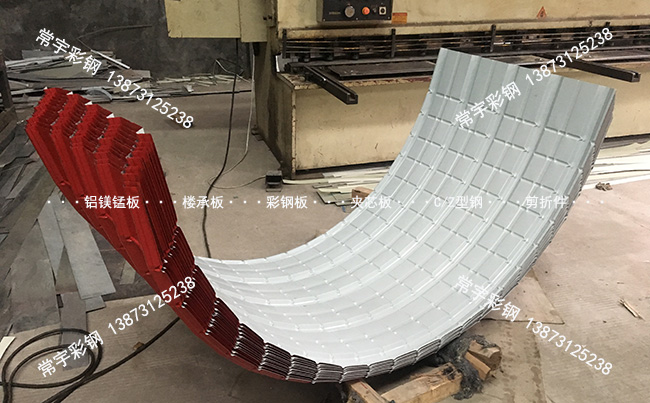 弧形彩鋼瓦是由彩鋼板壓制成彩鋼瓦然后通過打彎而成!