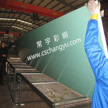 廣泛用于公共建筑、工業(yè)廠房的屋面、墻面和電子、醫(yī)藥、生物化工、食品等行業(yè)以及辦公室的裝飾圍護(hù)、吊頂、門;簡(jiǎn)易活動(dòng)房的圍護(hù)、組合冷庫(kù)、樓頂加層、崗?fù)さ取?/p>