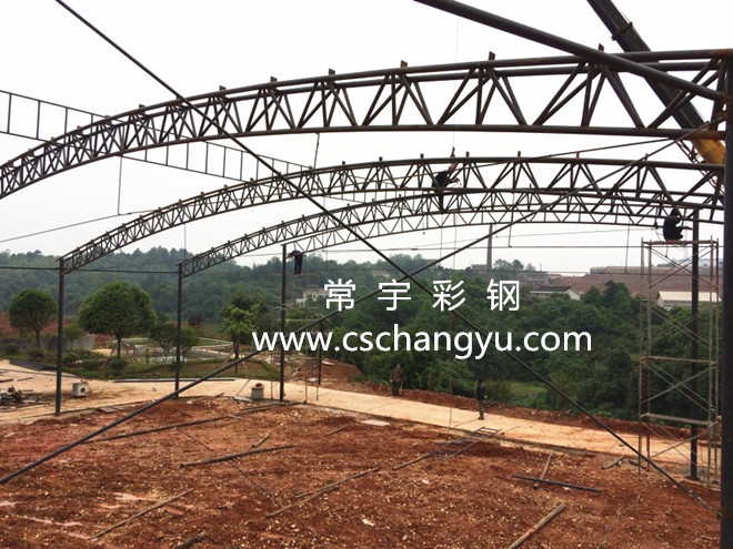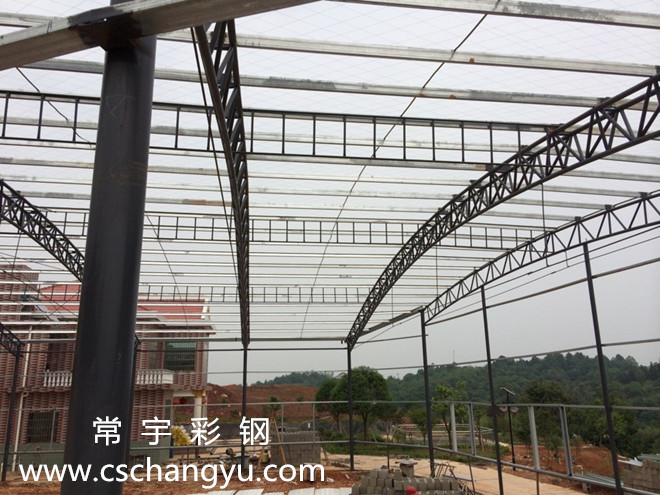 發(fā)布時間:2014-5-22來源:常宇彩鋼作者:常宇彩鋼瀏覽次數(shù):(0) 長沙鋼結(jié)構弧形棚廠房_異形棚廠房【設計,制作,安裝】_長沙縣白竹