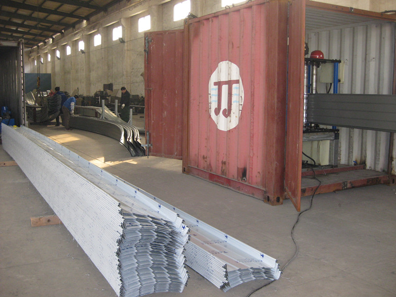 直立鎖邊鋁鎂錳屋面安裝效果圖:弧長(zhǎng)8.6m,拱高800mm。通過(guò)使用專業(yè)的立邊高度65mm和咬合設(shè)備,在沿著板條長(zhǎng)度方向上將兩塊板的立邊進(jìn)行咬合,從而將屋面連接成為一個(gè)整體。系統(tǒng)不需要打膠,100%結(jié)構(gòu)性防水。