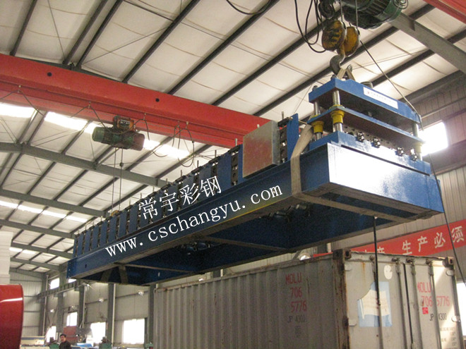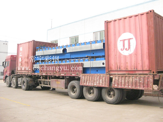 圖為樓承板,扇形、弧形一體機+集裝箱設(shè)備到達(dá)常宇廠內(nèi)